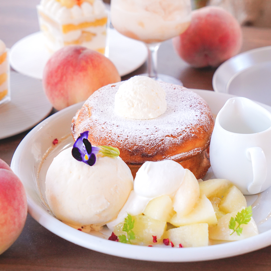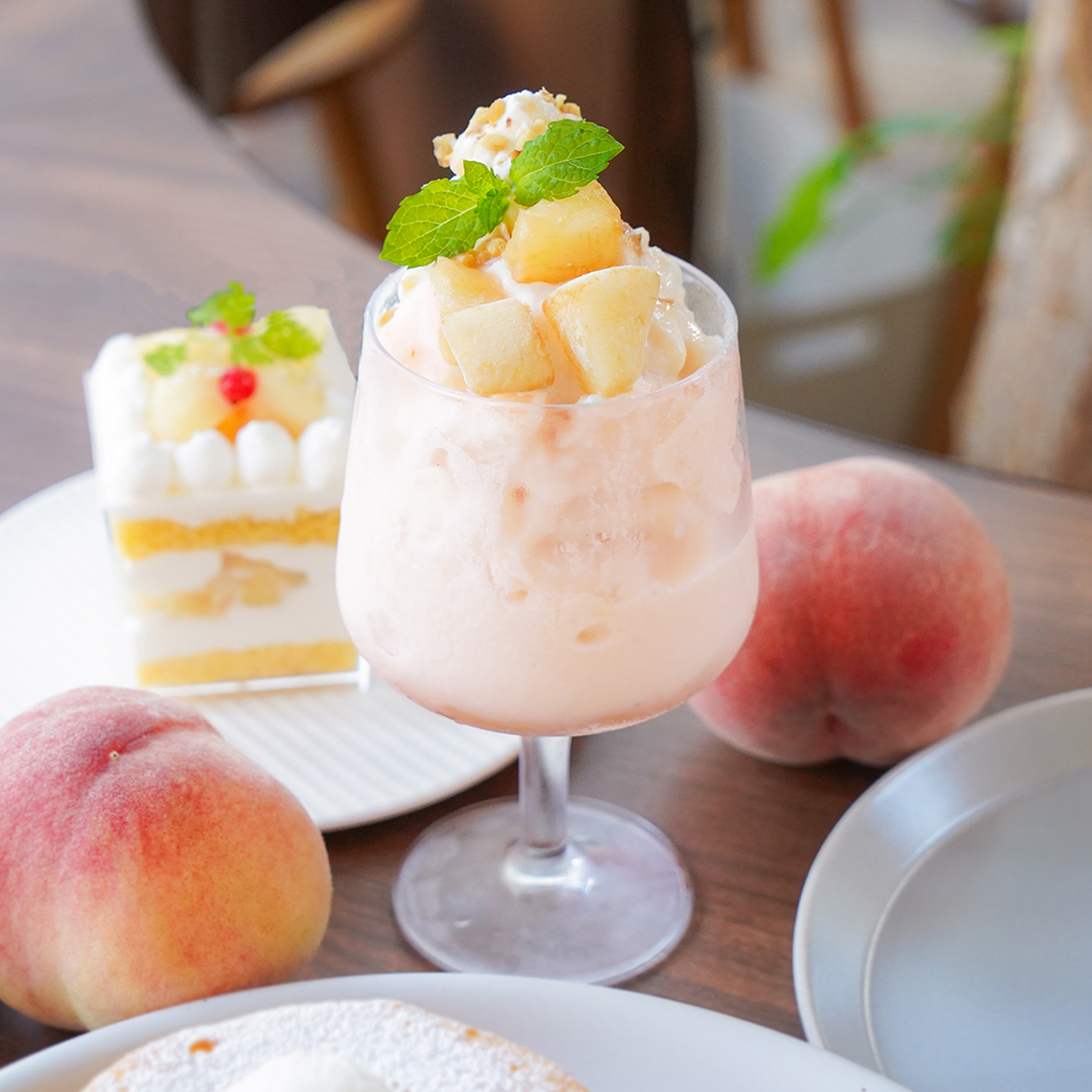 2025年7月7日 季節限定 【桃フェア】旬の桃をたっぷり使った贅沢スイーツ! 旬の桃をたっぷり使った期間限定スイーツ&ドリンクが登場! ※桃パフェ、桃パンケーキ、桃スムージーの3種類は平日のみ12時から13時半まで販売一時休止。 白桃とレアチーズのパフェ 爽やかなジャスミンジュレと香ばしいココナッツメレンゲ、レアチーズムースをバランスよく重ね、トップには桃1玉をまるごとトッピング。 桃の中にはカスタードクリームと桃ソースがたっぷり入った毎年人気のパフェ。 1,900円 桃のパンケーキ~塩ホイップバター添え~ 当店人気のパンケーキにフレッシュの桃と塩味を効かせた自家製ホイップバターを添えました。 お好みで、はちみつレモンシロップをかけてお召し上がりください。 ※酸味の強いシロップです。 (1枚)1,900円 (2枚)2,100円 丸ごと桃タルト サクサクのタルト生地の上に当店オリジナルのカスタードクリーム、桃を丸ごと1玉乗せたボリューム満点のタルト。 中に入ったベリーソースがアクセント。 1,200円 桃のショートケーキ ふわふわな自家製スポンジに生クリームとフレッシュな桃をサンドしました。 650円 ももスムージー もものコンポートをそのまま冷凍し、スムージーにしました。 凍ったももの果肉も入っていて、この季節にはピッタリです。 860円 季節限定rejoyceのスイーツです。 なくなり次第終了なので、お早めにどうぞ♪ チラシはこちらから ダウンロードできます。
